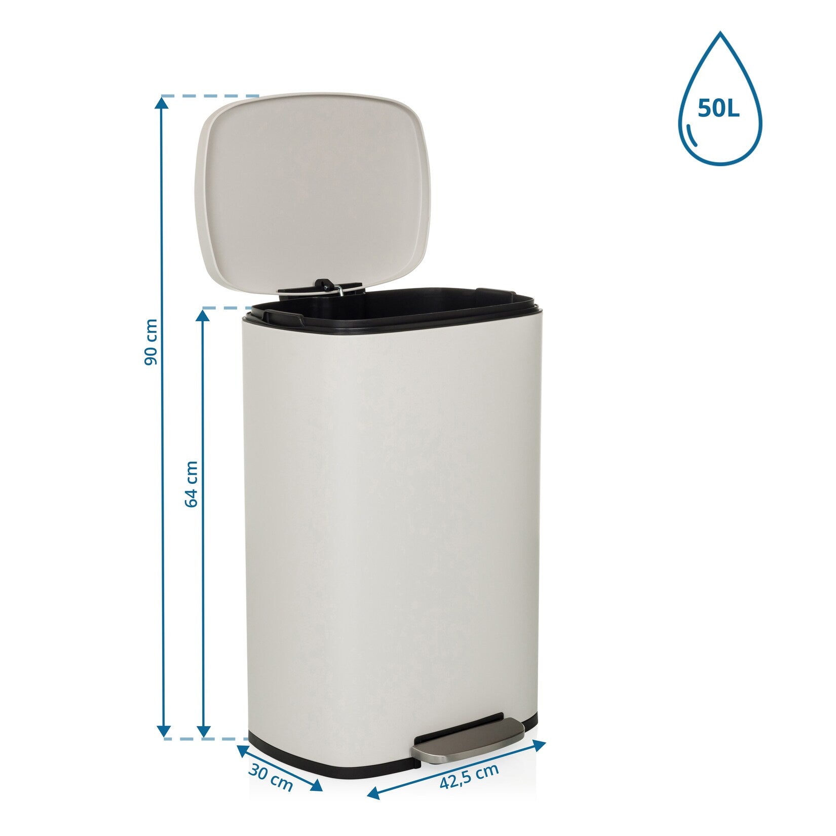 Der rechteckige Abfalleimer CLEAN XV von hjh OFFICE besteht aus pulverbeschichtetem Stahl mit mattem Finish und hat ein Fassungsvermögen von 50 Litern. Die Step-On-Tretfunktion ermöglicht ein hygienisches Öffnen ohne Handkontakt, während der Softclose-Deckel geräuschlos schließt und Gerüche sicher im Inneren hält. Ein herausnehmbarer Inneneimer aus schwarzem Kunststoff sowie eine fingerabdrucksichere Beschichtung erleichtern Reinigung und Handhabung. Der praktische Tragegriff und die luftdichte Konstruktion machen den CLEAN XV ideal für Küche, Bad oder Büro.