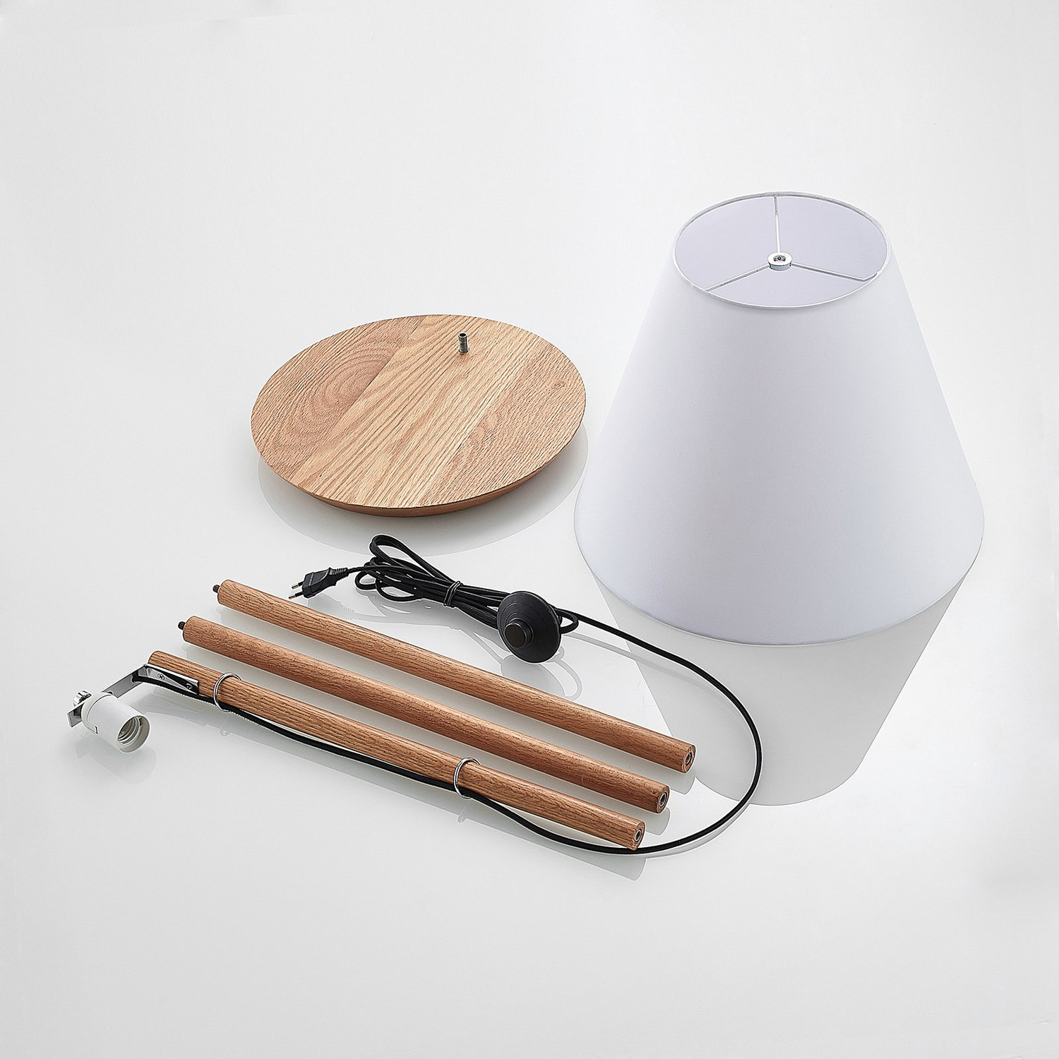 B-Ware Lucande Jinda Stehlampe Stehleuchte Lampe Leuchte Holzgestell Design Stoff Weiß