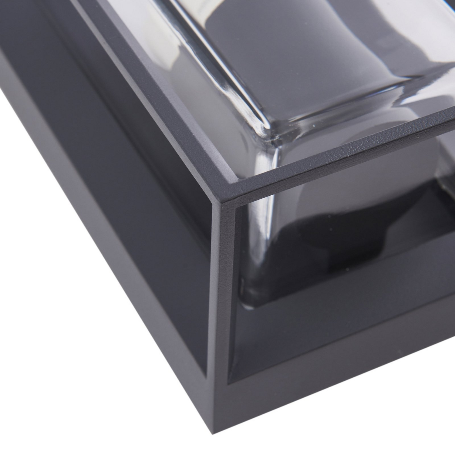 Die moderne und edle Außenwandleuchte Ismera überzeugt durch ihre geradlinige Gestaltung und die hochwertigen Materialien Aluminiumdruckguss in dunklem Grau und klares Glas. Das Licht des Leuchtmittels strahlt in alle Richtungen und sorgt für eine perfekte Ausleuchtung des Eingangs oder der Terrasse. Eine klare Filamentlampe kann die dekorative Optik zusätzlich verstärken. Dank der Schutzart IP65 ist die Leuchte auch für unüberdachte Bereiche geeignet.