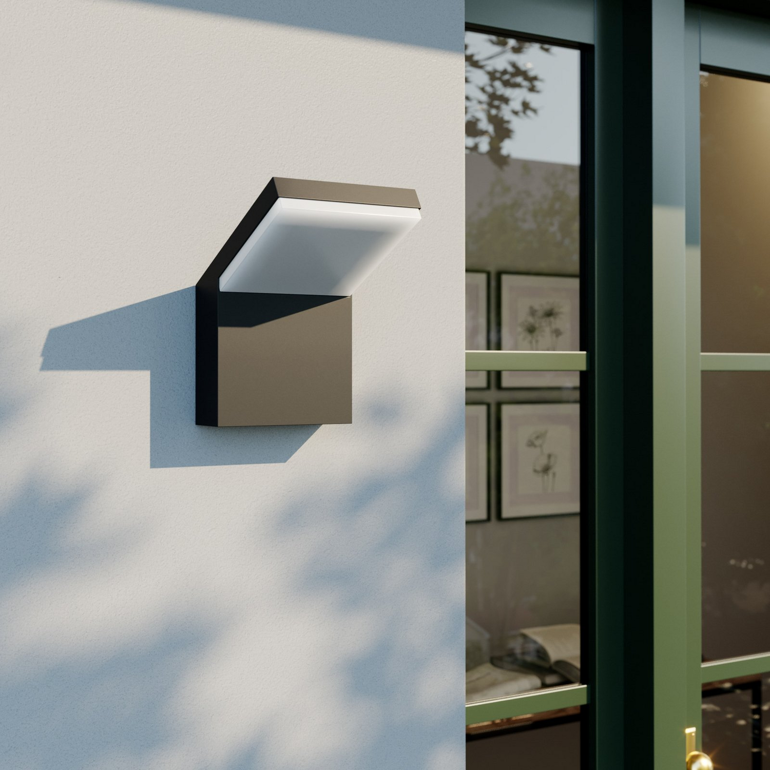 Yolena besitzt eine geradlinige Formensprache und die Leuchtfläche befindet sich in einem schrägen Winkel zum Boden. Die LED-Außenwandlampe erzeugt viel Licht, verbraucht aber vergleichsweise wenig Strom, sodass man von einer guten Energieeffizienz sprechen kann. Gerade im Außenbereich von modernen Bauten eine sehr praktische Ergänzung, die genügend Licht zum Orientieren bietet.