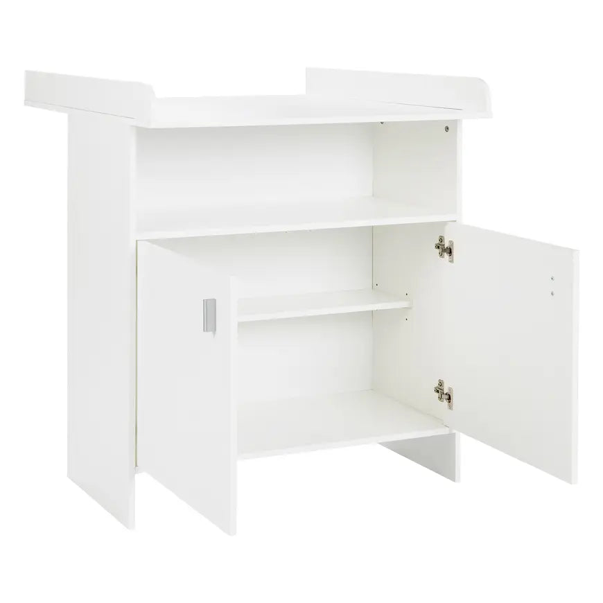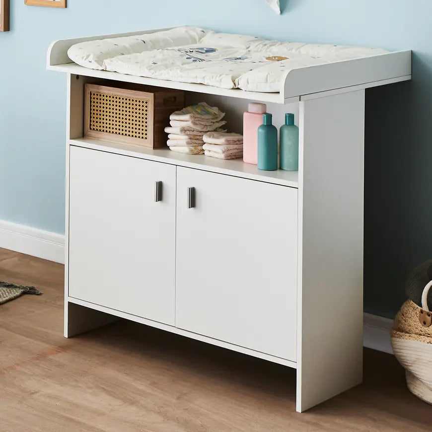 Mit der wunderschönen Wickelkommode Joschi von Arthur Berndt erhältst du eine praktische Verstau-Möglichkeit für die Kleidung, Spielzeug und Schätze deines Kindes. Die Aufsatzseiten kannst du einfach abnehmen und hinter den zwei Türen befindet sich ein Ablageboden. Dank dem zeitlosen Design passt die Wickelkommode zu jedem Babyzimmer und das passende Babybett Joschi ist separat erhältlich.