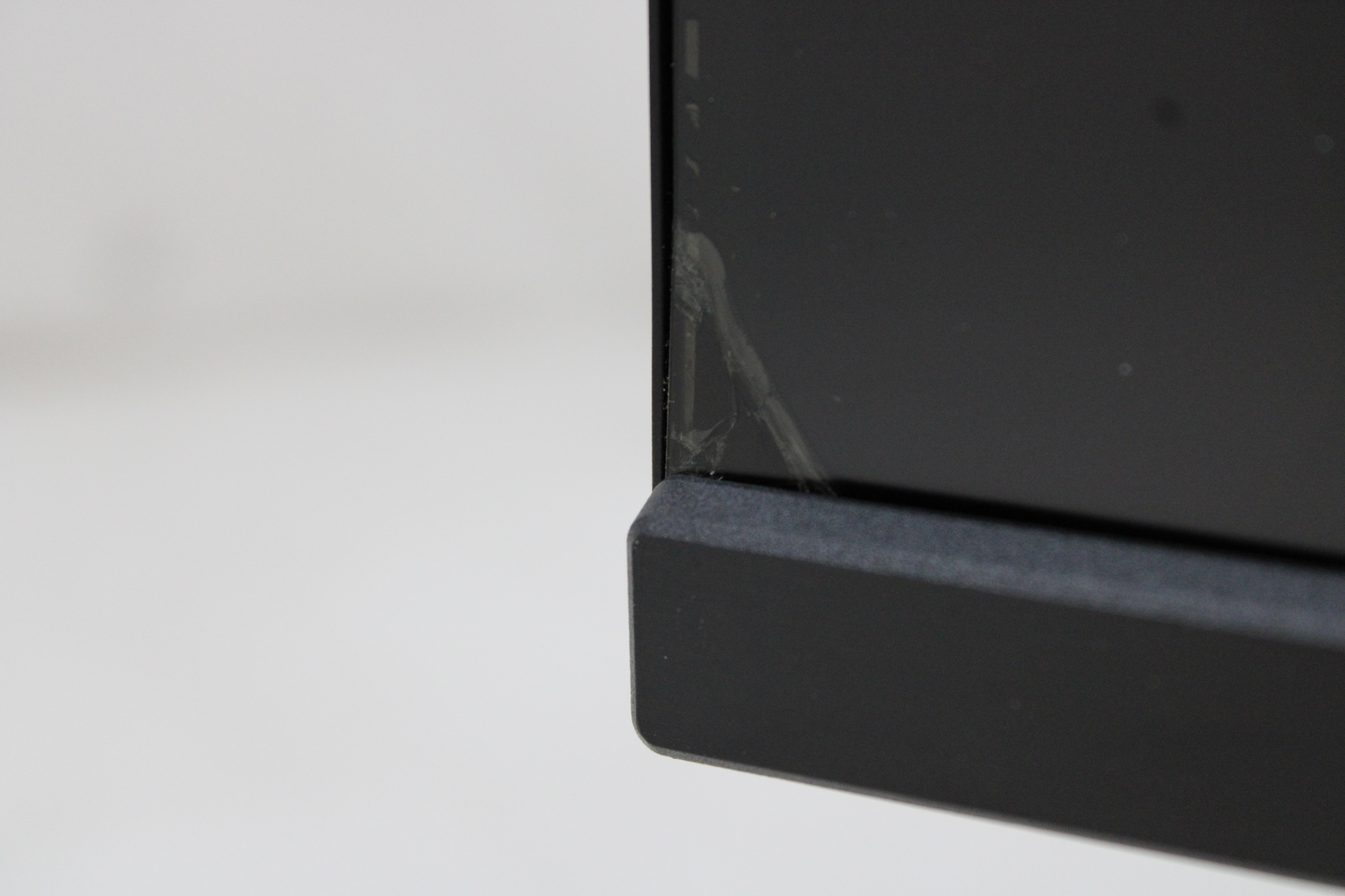 Defektgrund: Großflächig beschädigte Matrix. Linke untere Ecke des Bildschirms beschädigt.