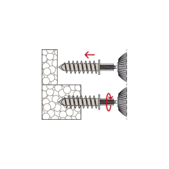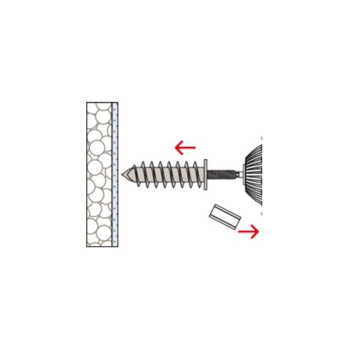 - Die Gewindespirale schneidet sich formschlüssig in die Dämmplatte