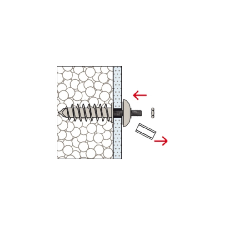 - Durch das Setzen des Dübels ausschließlich in der Dämmung können Anbauteile wärmebrückenfrei montiert werden. Der Dübel bietet eine energetisch optimierte Befestigung