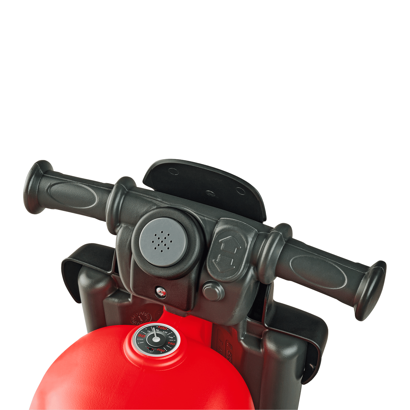 Das Kinderfahrzeug ist bis zu 25 kg belastbar und verfügt über Premiumräder mit Softmaterialbeschichtung, die eine exzellente Bodenhaftung und flüsterleise Abrollgeräusche bieten. Zusätzlich ist das Sport Bike mit einem elektronischen Soundmodul ausgestattet, das realistische Motorradsounds erzeugt. Die sportliche Frontabdeckung sorgt außerdem für einen coolen Look.