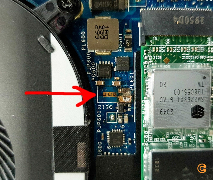 Mainboard hat Schaden, siehe Foto/Pfeil, Ursache unbekannt. Bei Betätigen des Einschalters läuft das Gerät kurz an (Lüfter drehen) aber kein Bild etc. und geht dann wieder aus. Abweichend von anderen Beschreibungen ist hier eine 128 GB m.2 SSD verbaut, welche aus Datenschutzgründen extern formatiert wurde, was bedeutet das auch kein Betriebssystem (Windows) im Lieferumfang ist. Im Lieferumfang ist nur das Notebook mit zugehörigem USB-C Netzteil/Ladegerät keinerlei weiteres Zubehör oder Unterlagen.