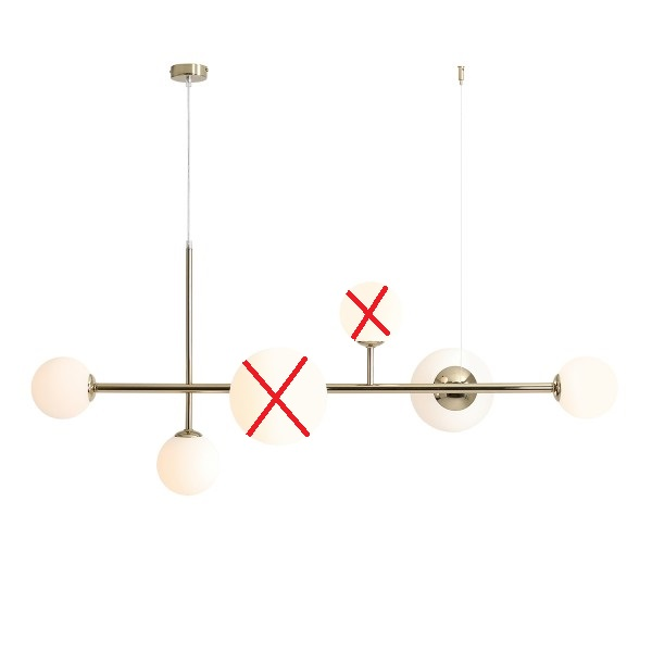 Eine Glühbirnenfassung ist beschädigt (siehe Fotos). Im Lieferumfang fehlt: Montagematerial Anleitung 1x Glasschirm (20 cm) 1x Glasschirm (14 cm)
