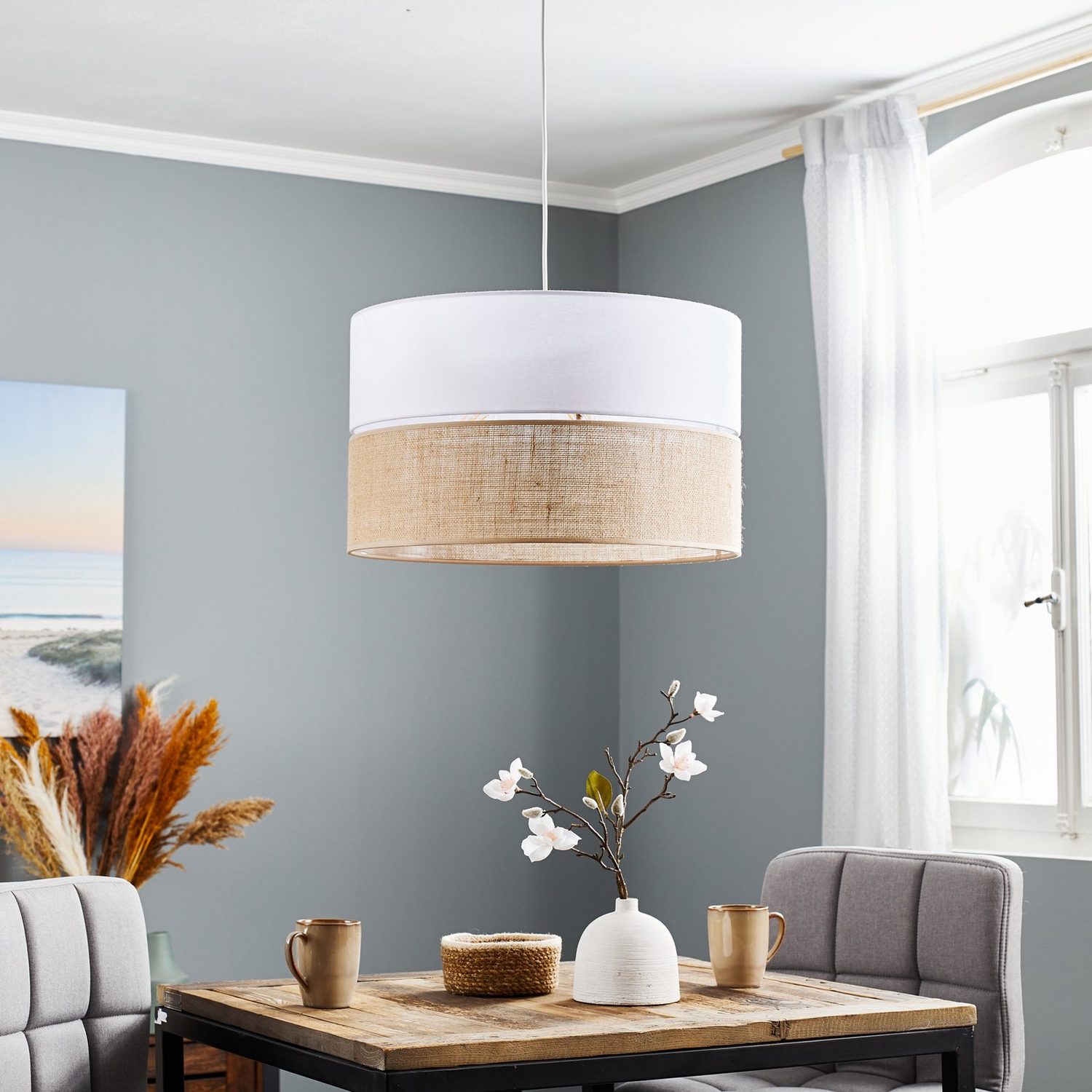 Euluna Hängeleuchte Linobianco Jute Weiß Braun Hängeleuchte Pendelleuchte Lampe B-Ware