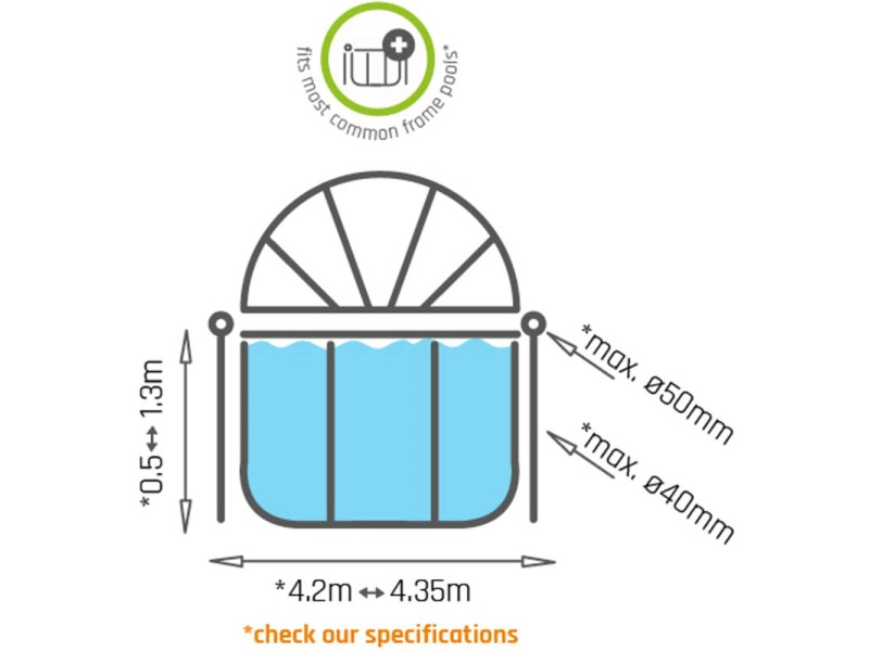 Die Abdeckung ist schnell an dem Rahmen des Pools zu befestigen und einfach durch den einzigartigen Scharniermechanismus zu öffnen und schließen. Die Abdeckung kann selbst halb geöffnet stehen bleiben, damit Sie einfach in und aus dem Pool steigen können.