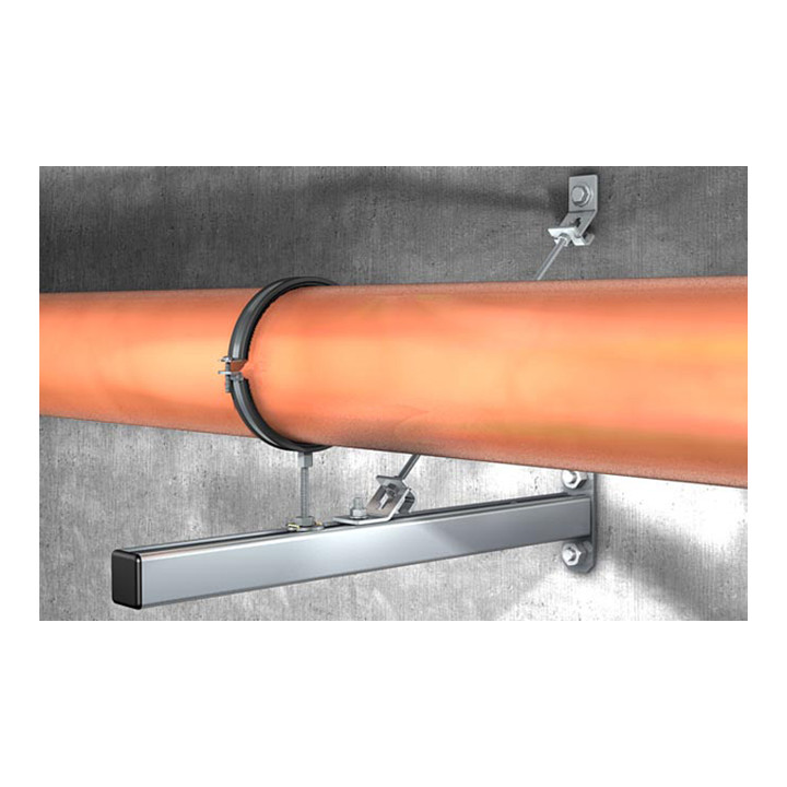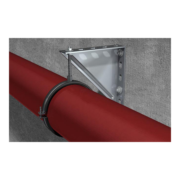Eigenschaften: Hohe geprüfte Lasten garantieren die sichere Funktion der FRSM. Die Anschlussmutter mit Kombigewinde M10/M12, M12/M16 oder M16 ermöglicht eine optimierte Lagerhaltung. Das gelochte Schellenband ermöglicht ab Ø 124mm die Befestigung mit 2 Gewindestangen z. B. für die Befestigung von Guss-Dachentwässerungsleitungen. Die Zweischraubigkeit ermöglicht die optimierte Anpassung auf den Rohraußendurchmesser. Die Verlustsicherung der Schrauben gewährleistet eine problemlose Montage.