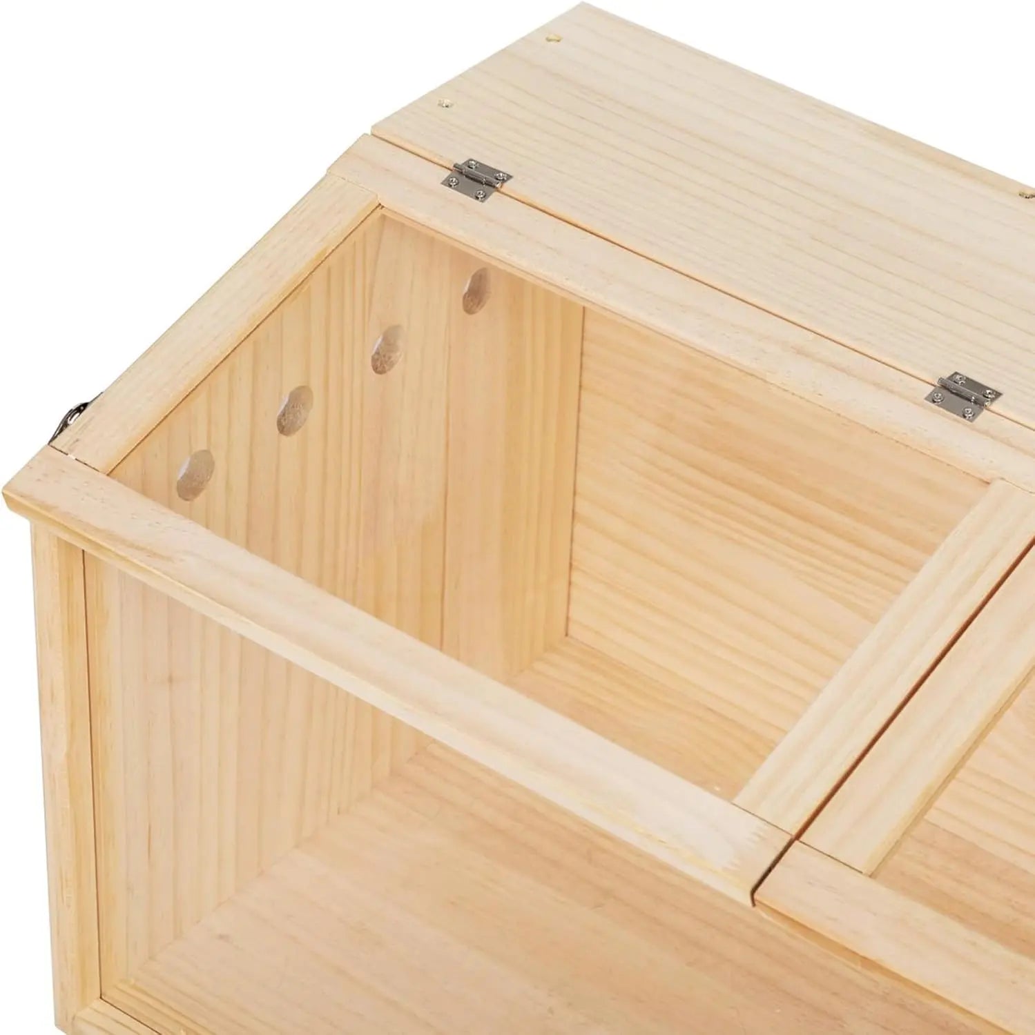 - Haltbare Massivholz-Konstruktion: Unsere Hamsterkiste ist aus 1,5 cm dicken Kiefernholz und transparenten Acrylplatten gefertigt, was Stabilität und Kauwiderstand bietet. Das natürliche Material ist sicher und bietet einen komfortablen, natürlichen Lebensraum