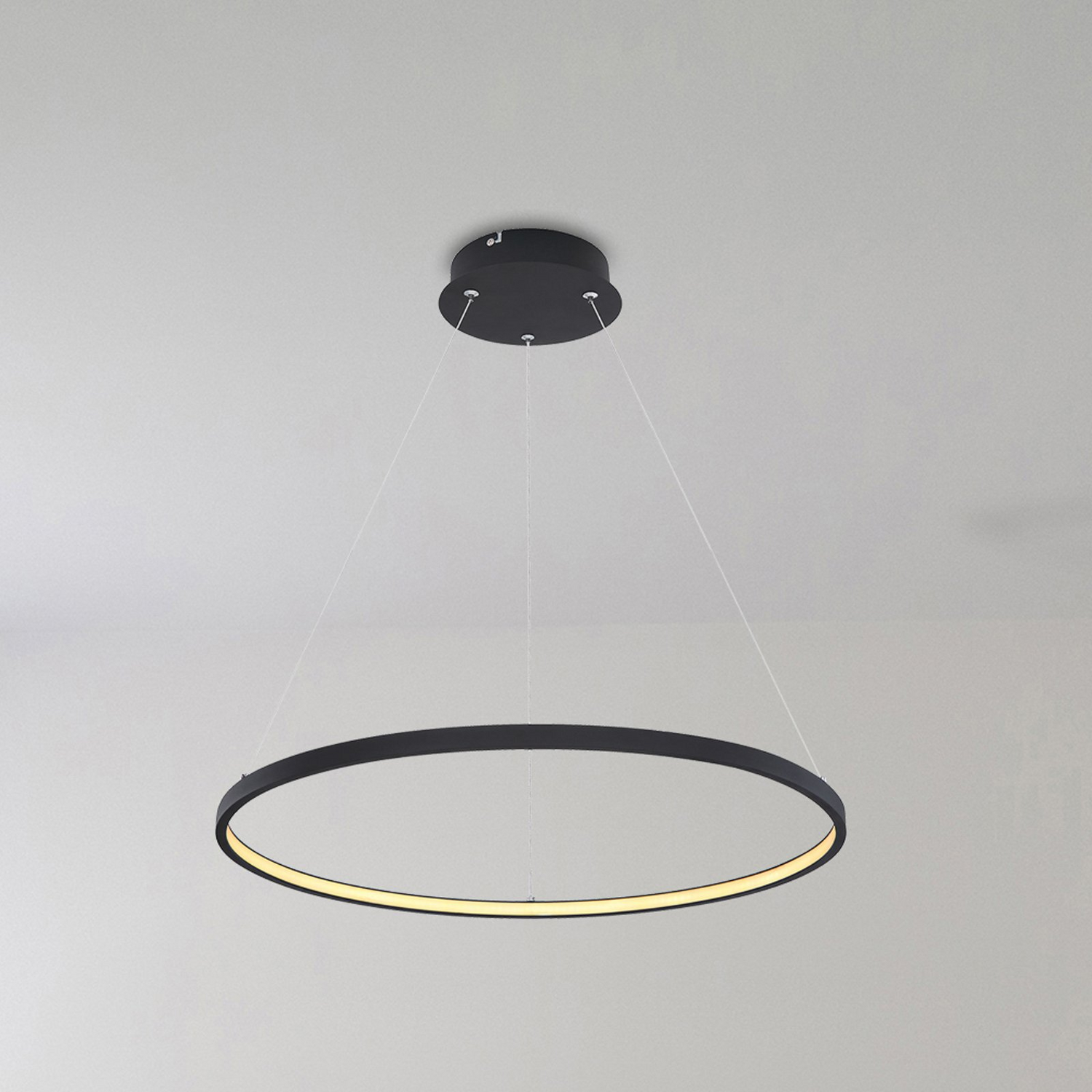 Runde LED-Hängeleuchte Ralph aus Eisen in Schwarz mit einem Lichtkreis Ralph ist eine perfekte Ergänzung für die Inneneinrichtung und überzeugt durch ihr umfangreiches Design. Sie besteht aus einer kompakten Deckenhalterung, die einen breiten Lichtkreis trägt, der aus schwarz lackiertem Eisen hergestellt ist. Im Inneren dieses Kreises verlaufen fest verbaute LEDs, die eine warmweiße Beleuchtung generieren, die perfekt für den Innenbereich ist. Die LED-Hängeleuchte Ralph setzt markante Akzente und verleiht dem Einrichtungsstil das gewisse Etwas. Wer also auf der Suche nach einem absoluten Hingucker für das Mobiliar ist, wird durch die LED-Hängeleuchte Ralph nicht enttäuscht.