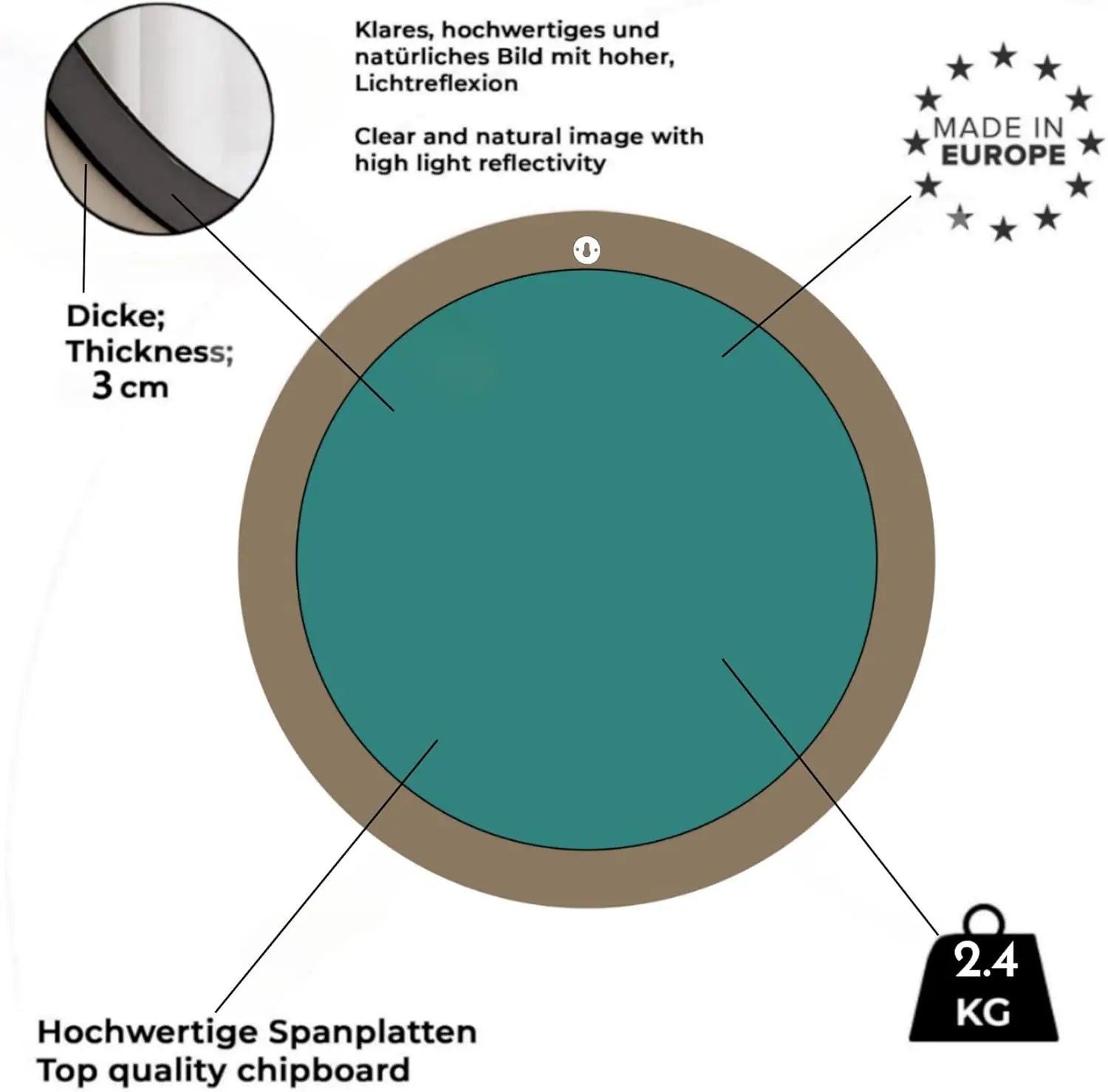 - BESONDERES MATERIAL - Wir setzen auf einen ökologischen Flotal-E Wandspiegel in runder Form. Die Herstellung des Round Mirror erfolgt gemäß der Norm EN 1036-1 - dies bedeutet wir verzichten auf Kupfer und Blei!