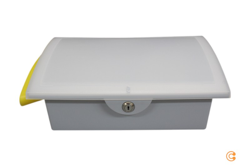 Der Artikel weist einen Defekt auf: Eine gebrochene Halterung des Deckels