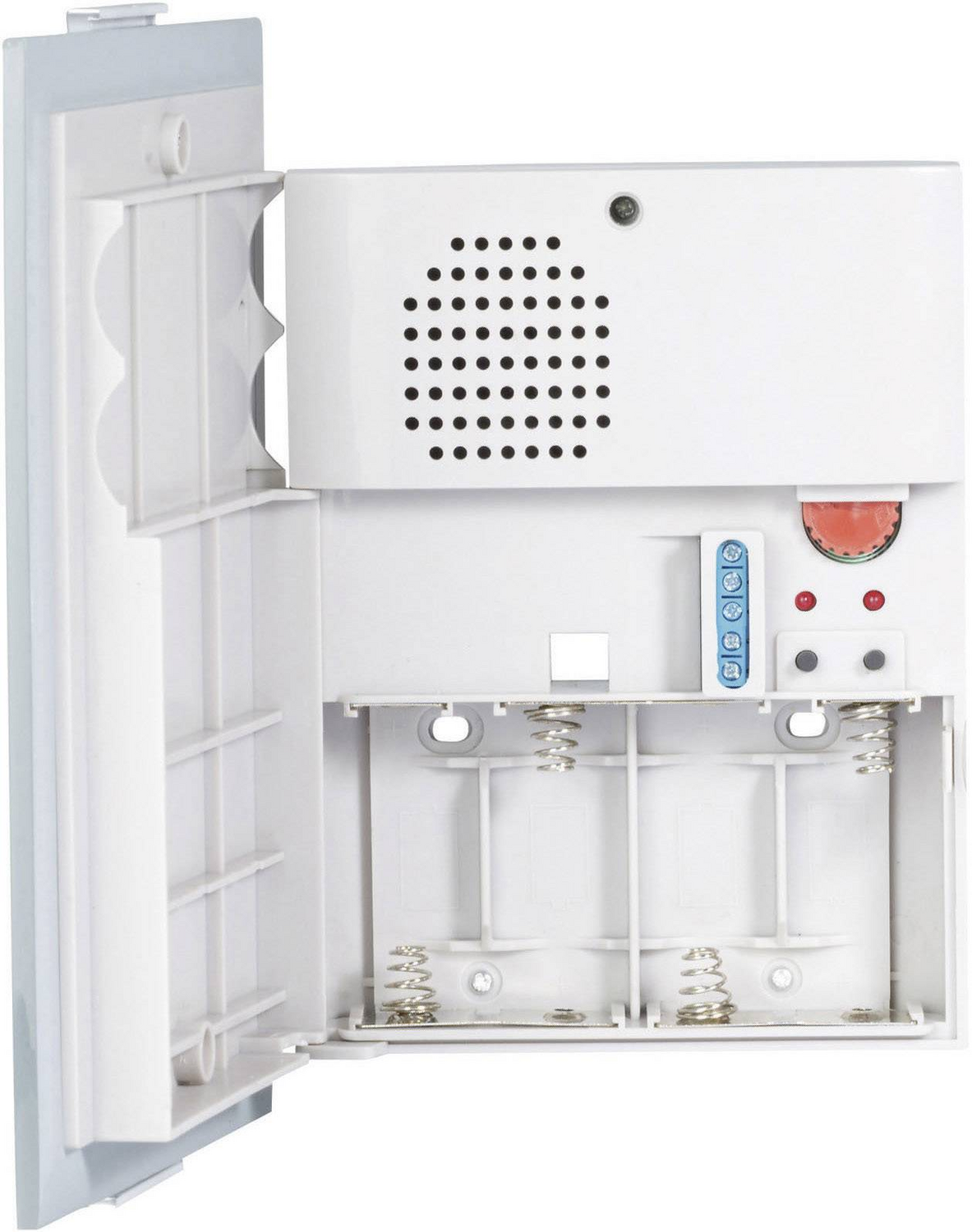 Beschreibung: 2 verschiedene Designs in einem Gerät. Mit stufenloser Lautstärkeregelung von 0 (Aus) bis 95 dB(A) (extra Laut). 20 Melodien über Tippschalter einstellbar. Mit 2fach Rufunterscheidung (z.B. für Nebeneingang).