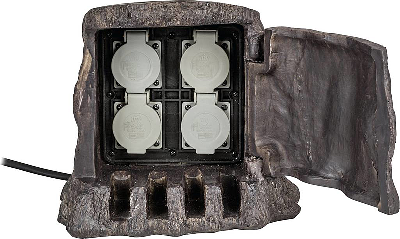 B-Ware Heitronic 37500 Gartensteckdose 4fach Ip44 Polyresin Steckdose Kunststoff Braun