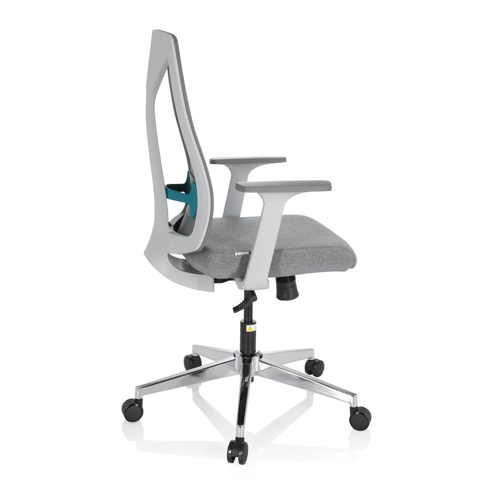 - Mit höhen- und winkelverstellbarer Lordosenstütze. Das Lordosenelement in Türkis hebt sich farblich vom Stuhl ab und bildet einen stylishen Farbakzent