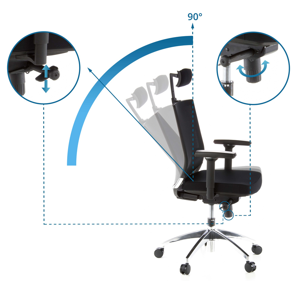 - 3-fach verstellbare Armlehnen: in der Höhe, horizontal und radial