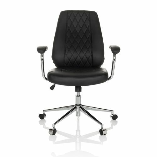 Die außergewöhnliche Formgebung unseres THEO I zieht einen sofort in seinen Bann. Der luxuriös gepolsterte Sitz ist angenehm vorgeformt, die Rückenlehne ist ebenfalls weich gepolstert und ergonomisch abgerundet. Der Bezug besteht aus rautenförmig abgestepptem Kunstleder, die Mechanik lässt sich arretieren und ist im Handumdrehen auf das jeweilige Körpergewicht angepasst. Harmonisch abgeschlossen wird das elegante Design durch das verchromte Fußkreuz.