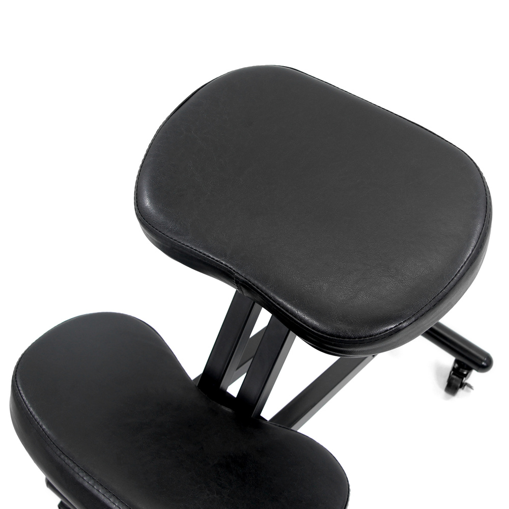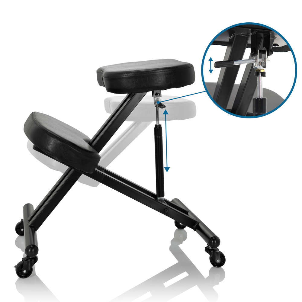 - Auf einem Kniestuhl nehmen Sie automatisch eine gesunde Rückenstellung ein. So werden Wirbelsäule und Bandscheiben entlastet sowie die Rückenmuskulatur gestärkt