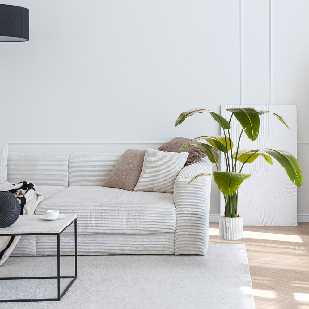 Sie lieben Pflanzen, doch haben weder die Zeit noch den berühmten grünen Daumen? Dann ist die BANANE genau das Richtige für Sie! Ganz getreu nach seinem Vorbild wurde die Kunstpflanze naturgetreu nachgebildet und unterscheidet sich dank hochwertiger Materialien und detailgetreuer Verarbeitung optisch kaum vom Original. Ein großer Vorteil: die pflegeleichten und strapazierfähigen Eigenschaften! So verlangt die Pflanze weder nach Wasser oder Sonnenlicht und bleibt das ganze Jahr über Grün, robust und dazu noch täuschend echt. Perfekt für alle, die öfters mal unterwegs sind und keine Zeit für aufwendige Pflanzenpflege haben. Ob zu Hause im gemütlichen Wohnbereich, als auch im Gewerbe in Büro- oder Besprechungsräumen – die BANANE bringt jederzeit natürliche Frische und wohnliches Ambiente in jeden Raum und lässt sich ganz nach Lust und Laune in Szene setzen.