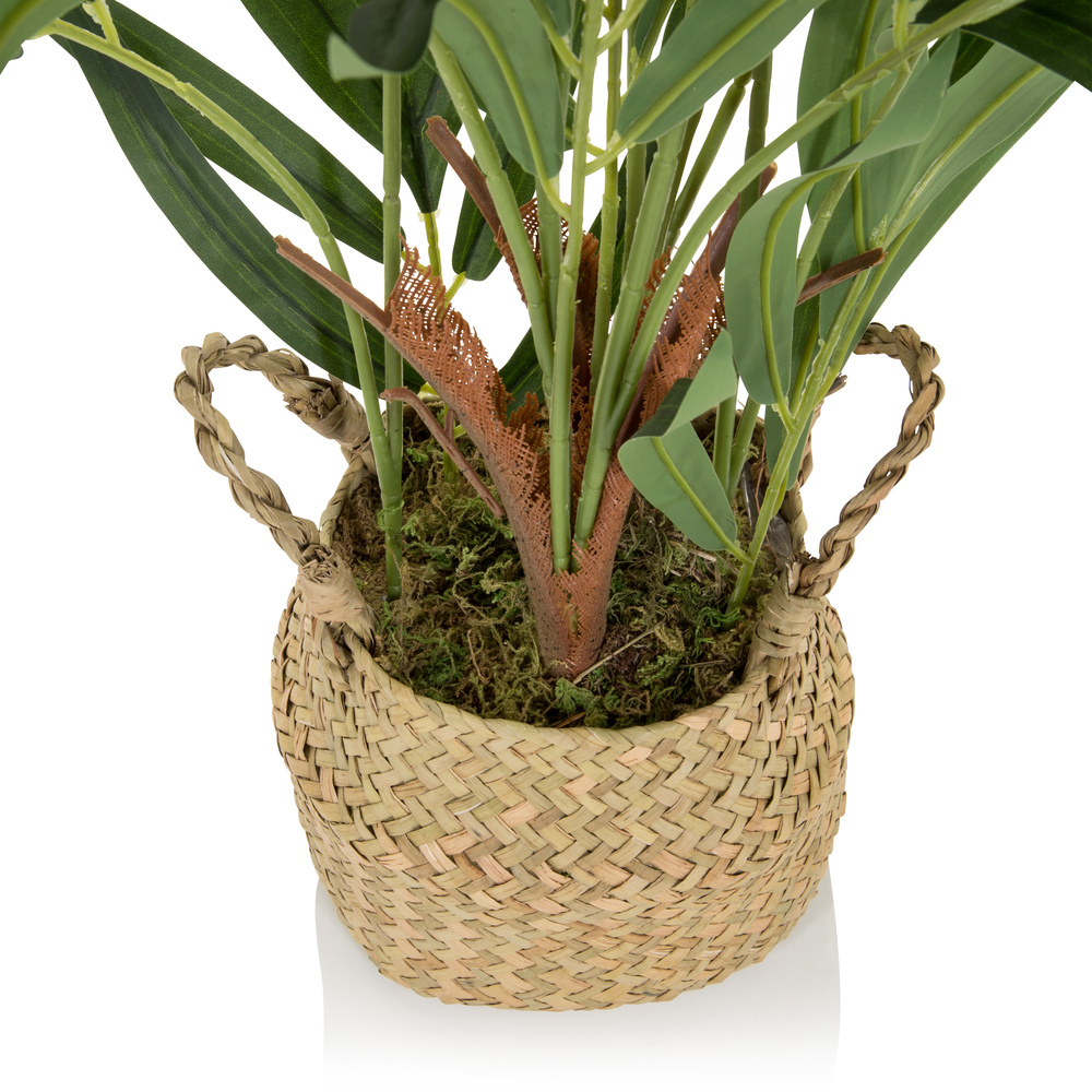 Sie lieben Pflanzen, doch haben weder die Zeit noch den berühmten grünen Daumen? Dann ist die CHAMAEDOREA genau das Richtige für Sie! Ganz getreu nach seinem Vorbild wurde die Kunstpflanze naturgetreu nachgebildet und unterscheidet sich dank hochwertiger Materialien und detailgetreuer Verarbeitung optisch kaum vom Original. Ein großer Vorteil: die pflegeleichten und strapazierfähigen Eigenschaften! So verlangt die Pflanze weder nach Wasser oder Sonnenlicht und bleibt das ganze Jahr über Grün, robust und dazu noch täuschend echt. Perfekt für alle, die öfters mal unterwegs sind und keine Zeit für aufwendige Pflanzenpflege haben. Ob zu Hause im gemütlichen Wohnbereich, als auch im Gewerbe in Büro- oder Besprechungsräumen – die CHAMAEDOREA bringt jederzeit natürliche Frische und wohnliches Ambiente in jeden Raum und lässt sich ganz nach Lust und Laune in Szene setzen.Artikelspezifikationen