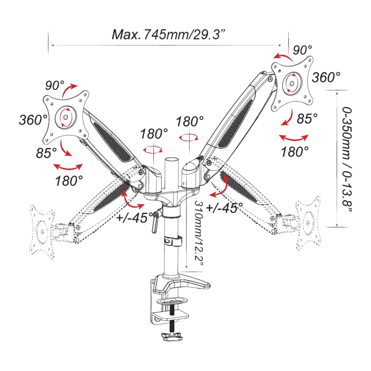 - Praktische Halterung für zwei Monitore der Größe 15 - 27" mit VESA Adapter 75x75 oder 100x100
