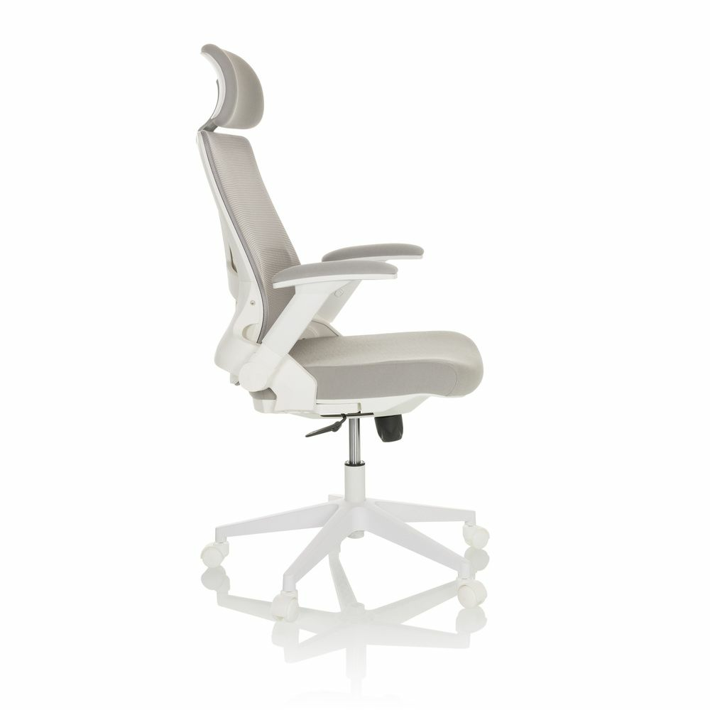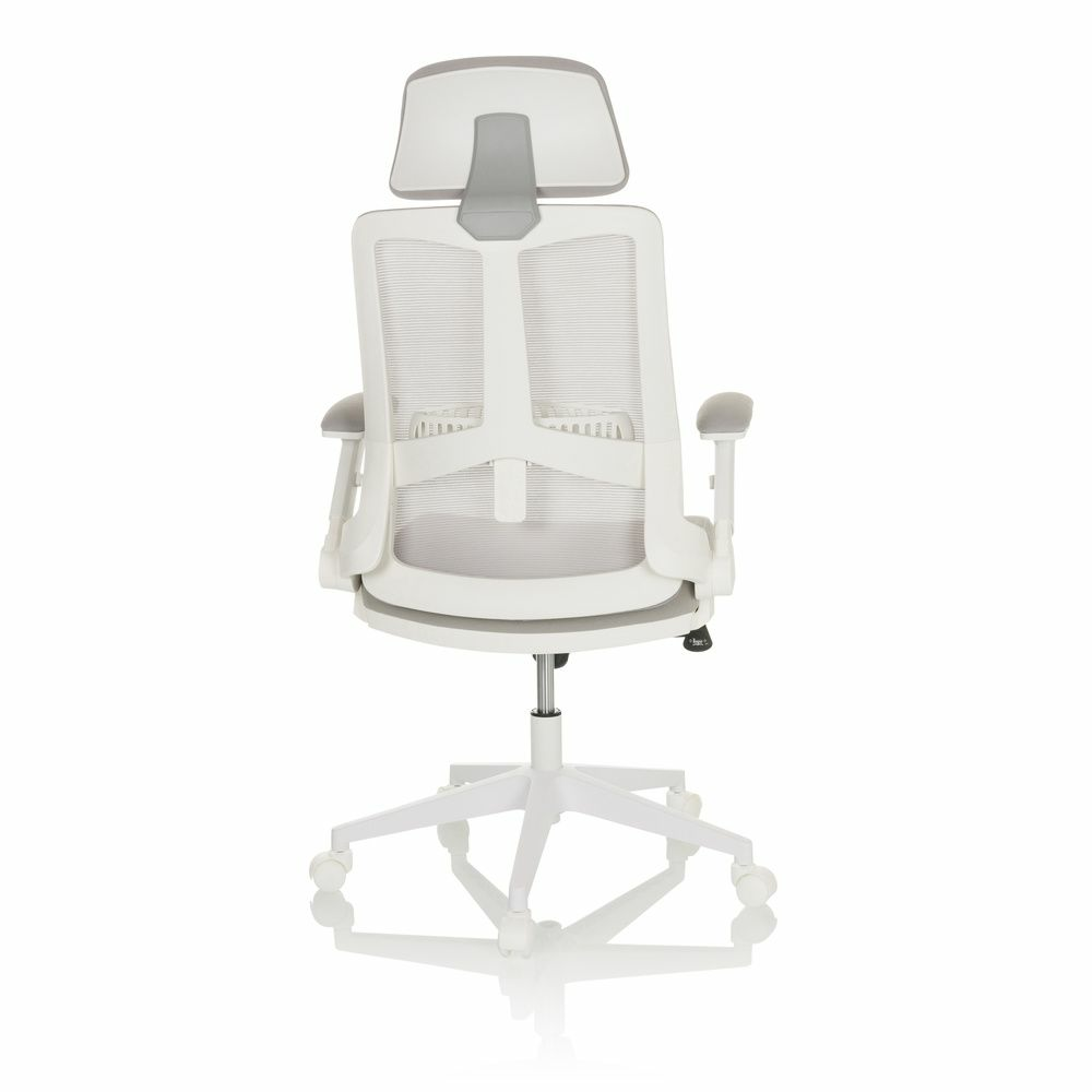 - Ergonomische Rückenlehne mit höhenverstellbarer Lordosenstütze und atmungsaktivem Netzbezug