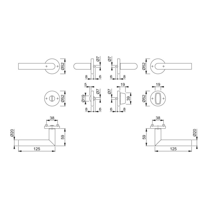 - Durchmesser Türgriff (außen): 20 mm