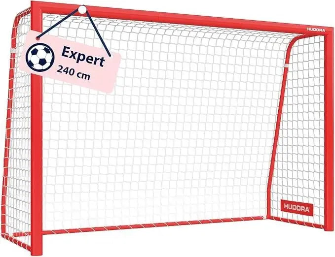 HUDORA Fußballtor Expert- großes Fußballtor für Kinder & Erwachsene-wetterfestes & standfestes Fußballtor mit engmaschigem Netz- Hochwertige Outdoor Torwand für Freizeit & Training, Rot, 240 x 160 cm