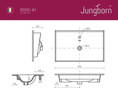 B-Ware Jungborn Möbelwaschtisch Sedici Waschtisch Becken Waschbecken Einbaubecken