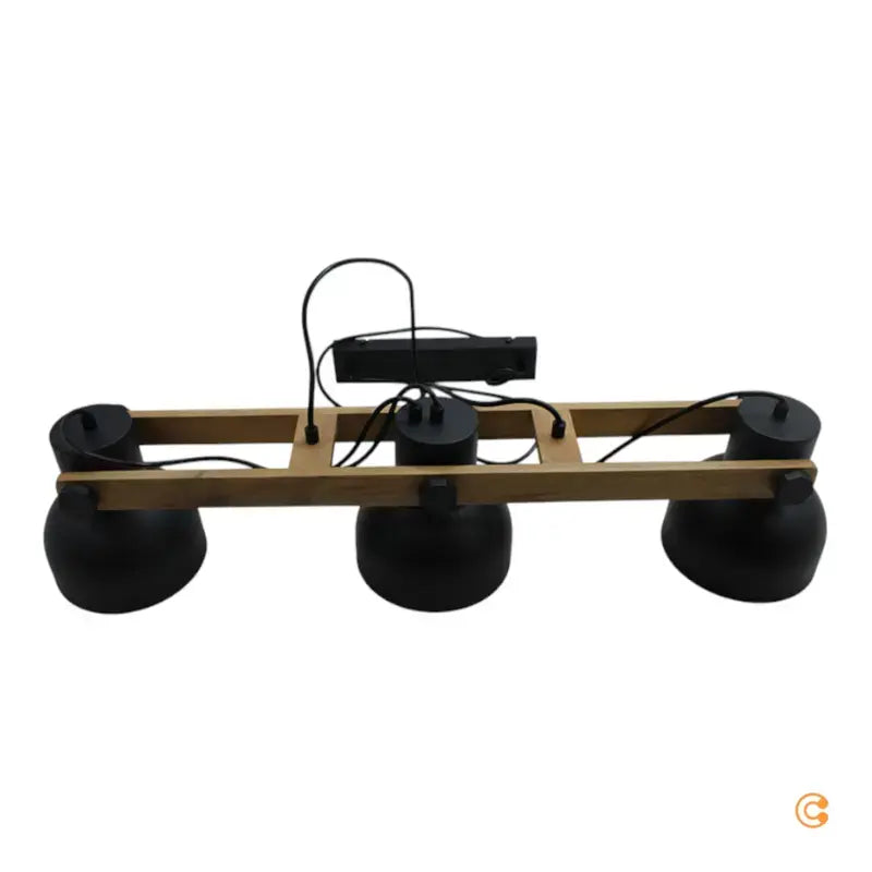 Die dreiflammige Pendelleuchte Cup 2.0 kombiniert schwarzes Metall und natürliches Akazienholz. Der Baldachin und die schwenkbaren Spots bestehen aus schwarz lackiertem Metall, während die Streben aus Akazienholz gefertigt sind. Die Innenseiten der Spots sind weiß, um optimale Lichtreflexion zu gewährleisten.