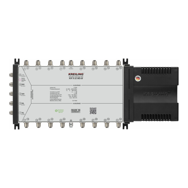 B-Ware Kreiling Tech Multischalter Verteiler Sat 4+1 Eingänge 32 Teilnehmer Netzteil