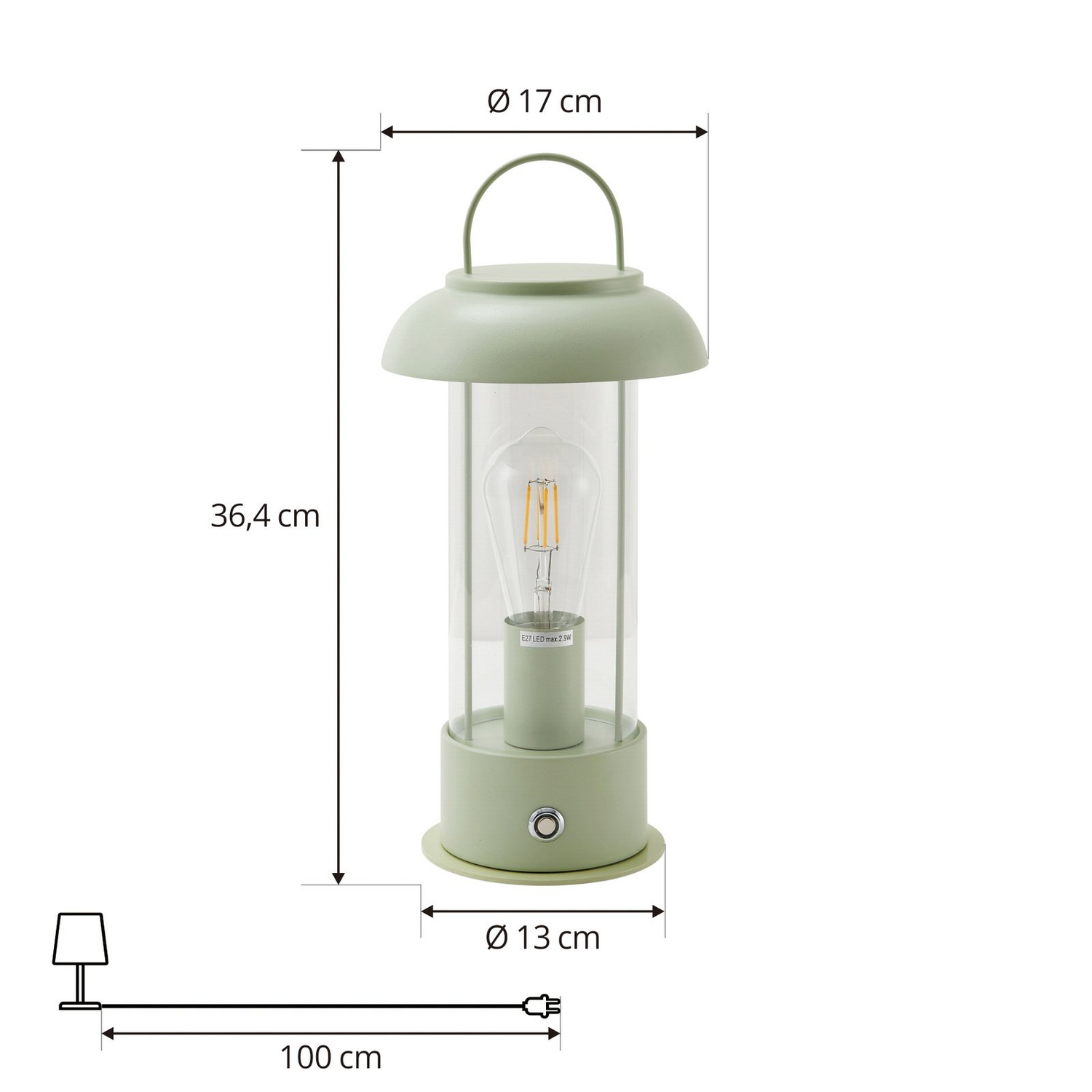 Akkutischleuchte Yvette für den Außenbereich mit Helligkeitsregulierung Die Akkutischlampe Yvette von Lindby vereint Funktionalität mit ansprechendem Design und bietet eine berührungsgesteuerte Helligkeitsregulierung für individuelle Lichtverhältnisse. Mit ihrer grünen Farbgebung und der Schutzart IP44 ist sie sowohl für den Innen- als auch für den Außenbereich geeignet, ideal für Terrasse und Balkon. Die stilistische Ausrichtung der Leuchte bedient sowohl moderne als auch Hotel- und Gastronomie-Ambiente, wodurch sie vielseitig einsetzbar ist. Die Energieeffizienz der Leuchte trägt zur Reduktion des Stromverbrauchs bei und bietet eine nachhaltige Beleuchtungslösung. Dank des integrierten Akkus kommt sie 5 Stunden ohne Kabel aus und kann daher flexibel platziert werden. Die Laternen-Optik verleiht ihr einen Hauch von Retro-Look. - mit speziellem LED-E27-Niedervolt-Leuchtmittel ausgestattet - inkl. 3600mAh Akku, Leuchtdauer 5h, Ladezeit 2h - 1m USB-C Kabel incl.