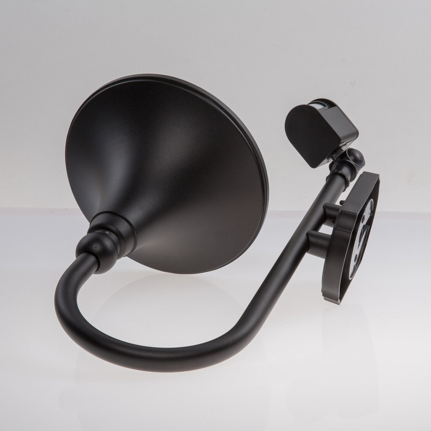 Formschöne Außenwandlampe Daphne mit Bewegungsmelder Die Außenwandlampe Daphne besteht aus schwarz lackiertem Metall, das von der Wandhalterung in gebogener Form abgeht und in einem glockenförmigen Element mündet. An der Unterseite über dem Leuchtmittel sitzt eine Kunststoffkuppel mit klarer Oberfläche. So wird das Leuchtmittel ausreichend geschützt, von der Helligkeit der Lampe geht aber nichts verloren. Für eine erhöhte Funktionalität wird die Außenwandlampe mit Sensor ausgeliefert. Auf diese Weise schaltet sich die Lampe nur dann ein, wenn sie eine Bewegung registriert und man vermeidet ein unnötiges Aufsuchen des Schalters und eine zu lange Brenndauer des Leuchtmittels. Die Reichweite des Sensors liegt bei 6 bis 21 Metern (kann in drei Stufen bestimmt werden), der Erfassungswinkel bei 180°. Die Leuchtdauer ist einstellbar von 1 Minute über 3 Minuten bis 8 Minuten.