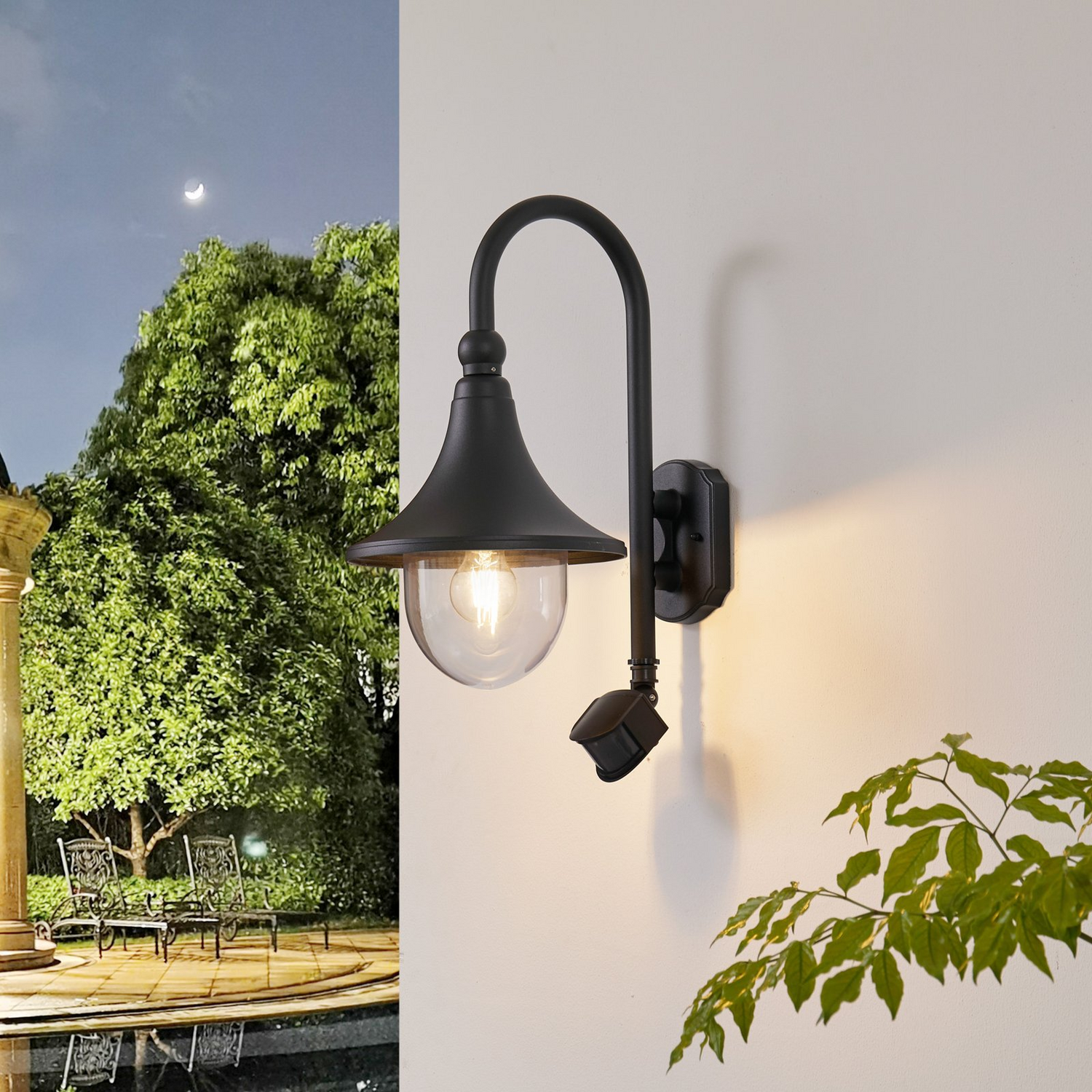 | Außenwandleuchte Daphne, schwarz, mit Sensor | Außenwandleuchte Daphne, schwarz, mit Sensor |
