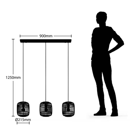 Pendelleuchte Canyana mit drei schwarzen Rattanschirmen
