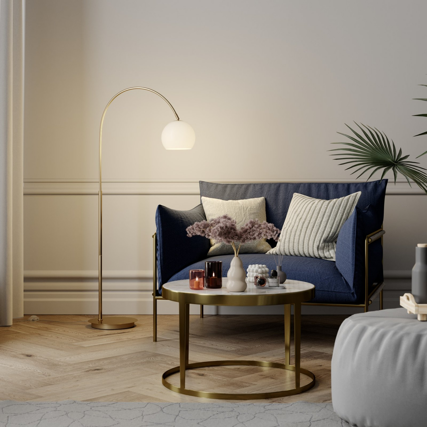 B-Ware Lindby Cynthia Bogenstehlampe Stehleuchte Stehlampe Lampe E27 Glas Messing M792