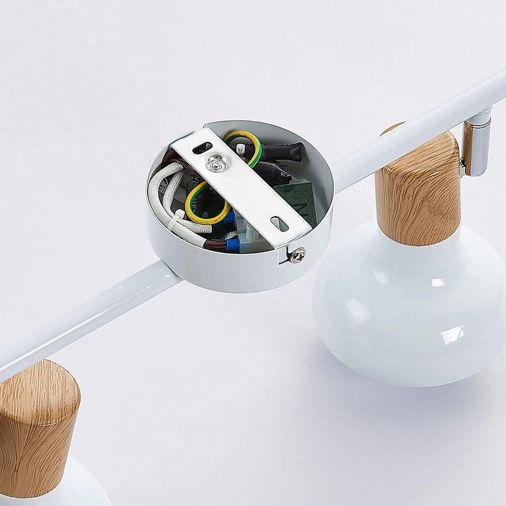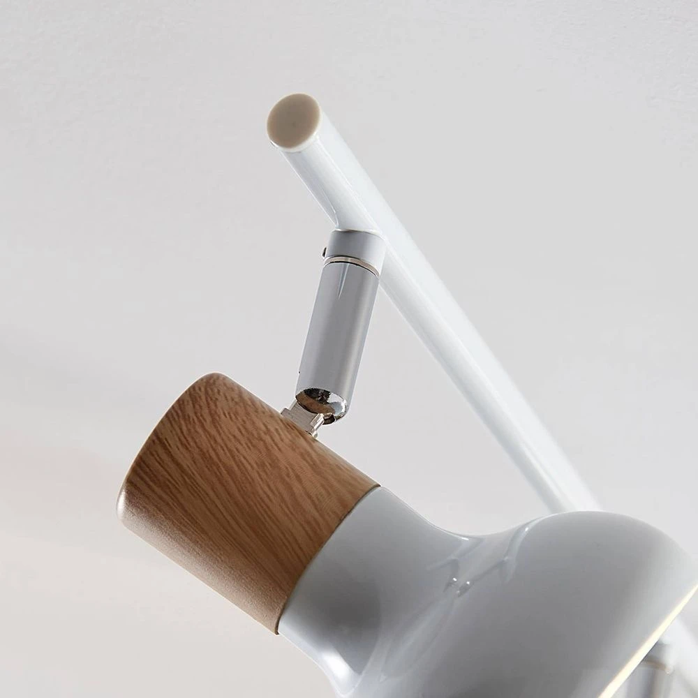 Die Deckenleuchte Fridolin und besteht aus weißem Metall und hat zusätzlich holzfarbenen Dekor, der das Erscheinungsbild stilvoll aufwertet. Die Schirme können gedreht und geschwenkt werden.