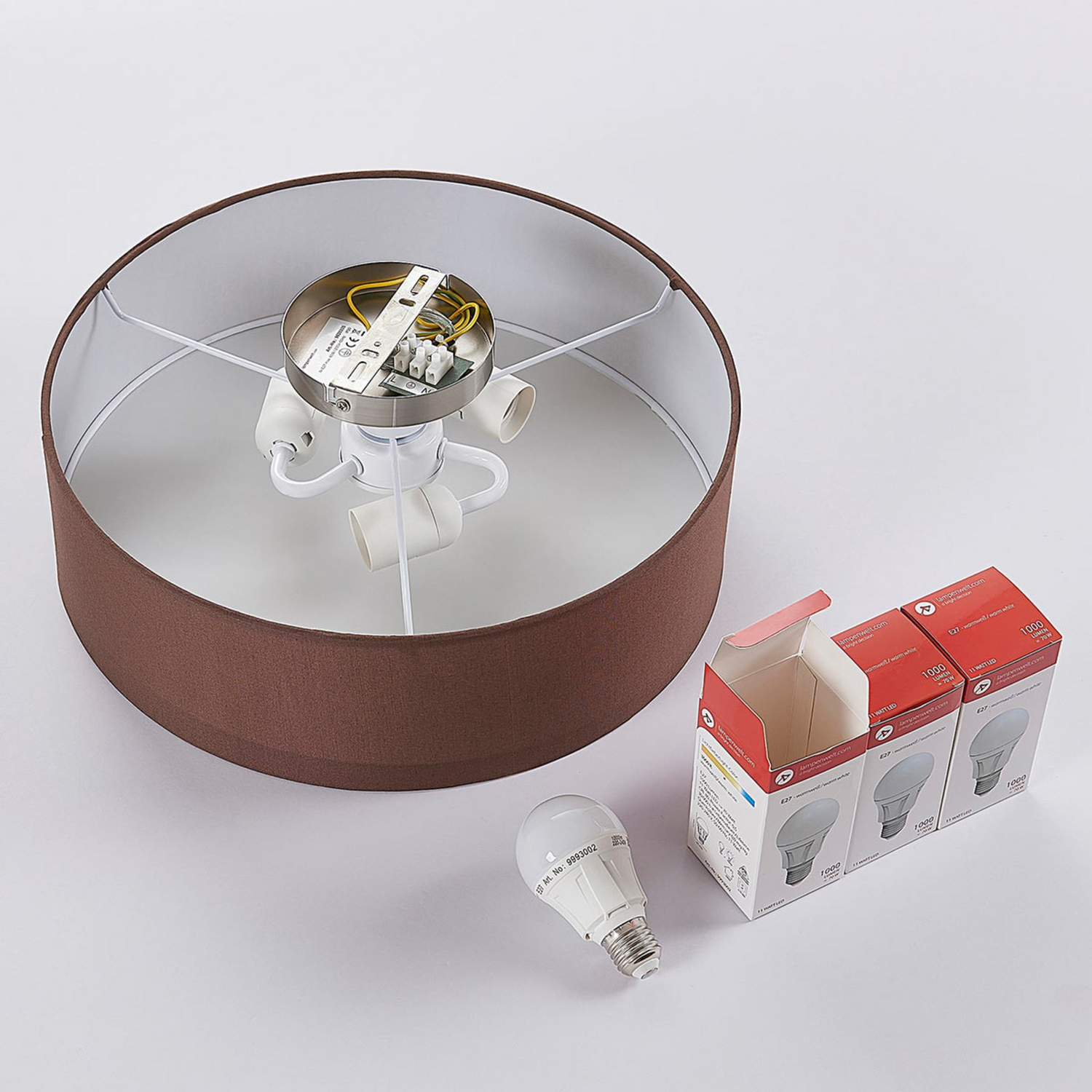 Lindby Deckenleuchte Sebatin, Ø 40 cm, hellbraun, Stoff, E27 | Lindby Deckenleuchte Sebatin, Ø 40 cm, hellbraun, Stoff, E27 |
