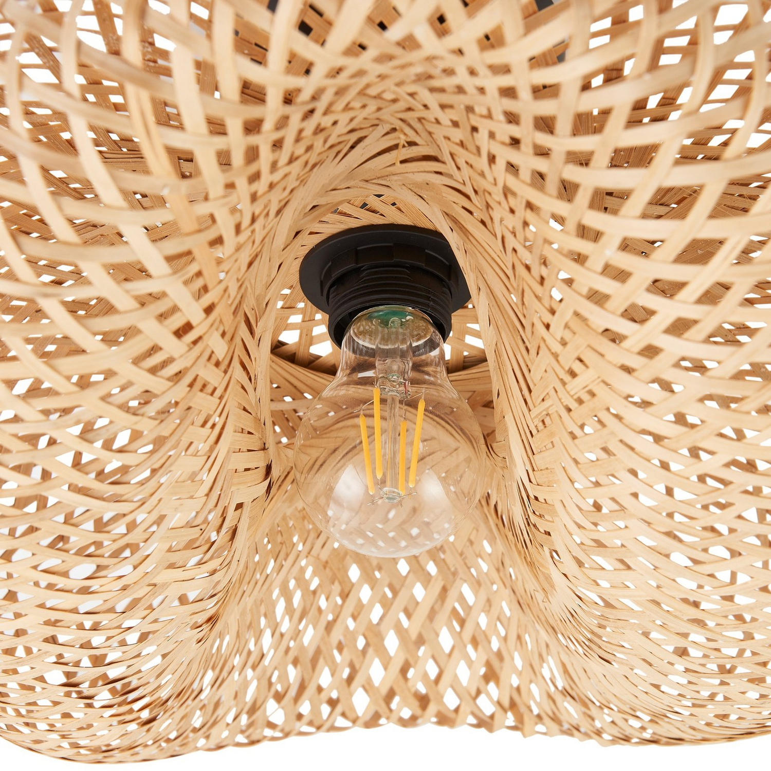 Die Deckenleuchte Eleane aus Bambus verleiht jedem Raum eine warme, rustikale Atmosphäre. Mit ihrer natürlichen Ausstrahlung passt sie hervorragend in Wohnzimmer, Esszimmer sowie Flurbereiche und schafft ein einladendes Ambiente.