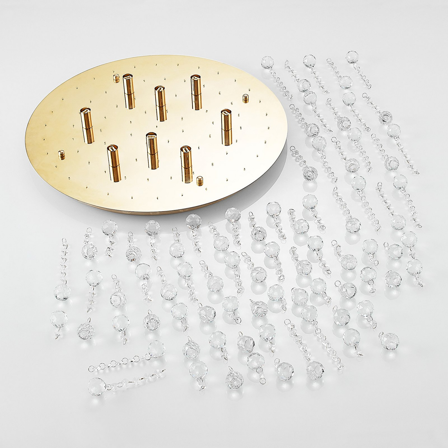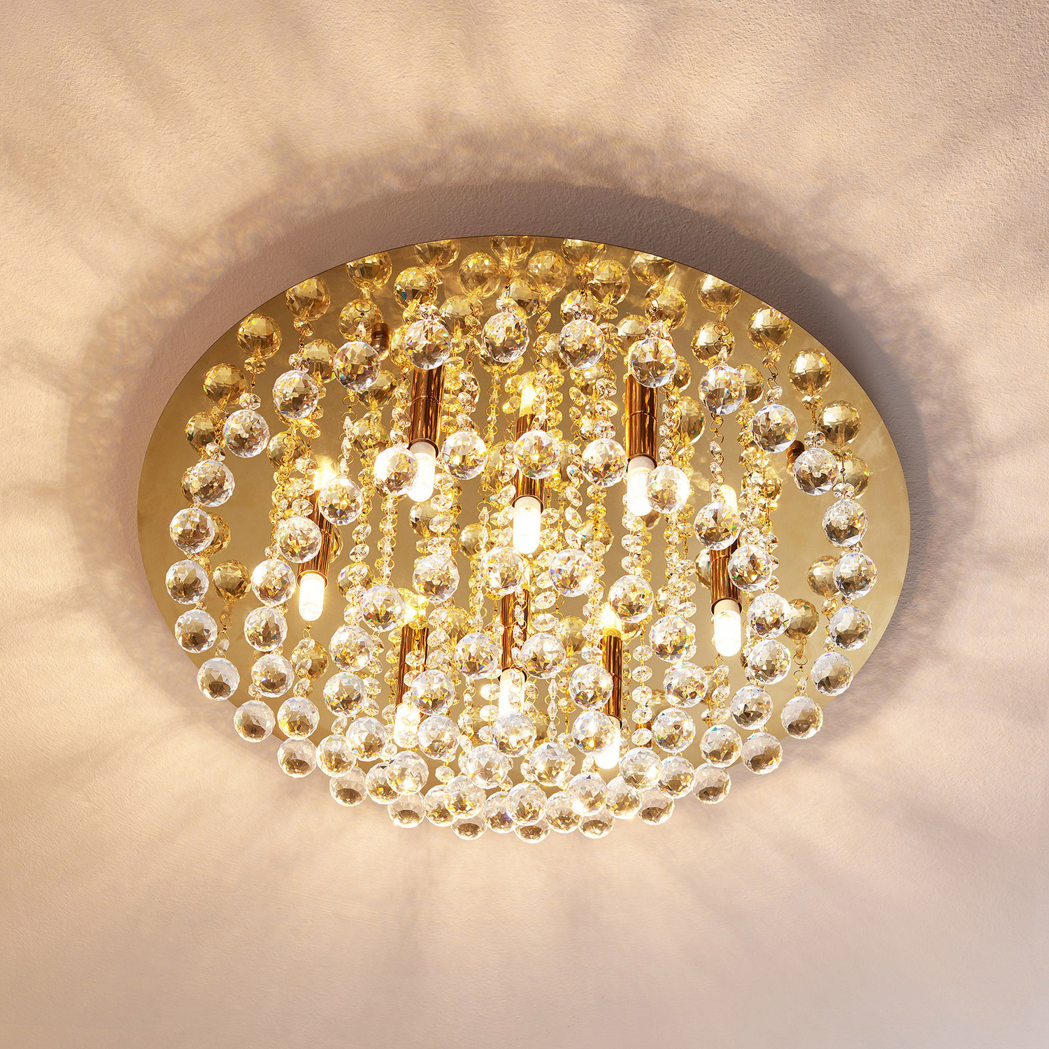 Die Deckenleuchte Gillion von Lindby überzeugt mit achtflammigem Design und hochwertigen Kristallelementen. Das goldene Gestell und die Kristallketten sorgen für ein elegantes Lichtspiel im Wohnzimmer oder Esszimmer. Die Gillion Deckenlampe ist dimmbar und für G9 LED-Leuchtmittel mit 40 Watt geeignet. Ideal für stilvolle Beleuchtung und luxuriöses Ambiente.