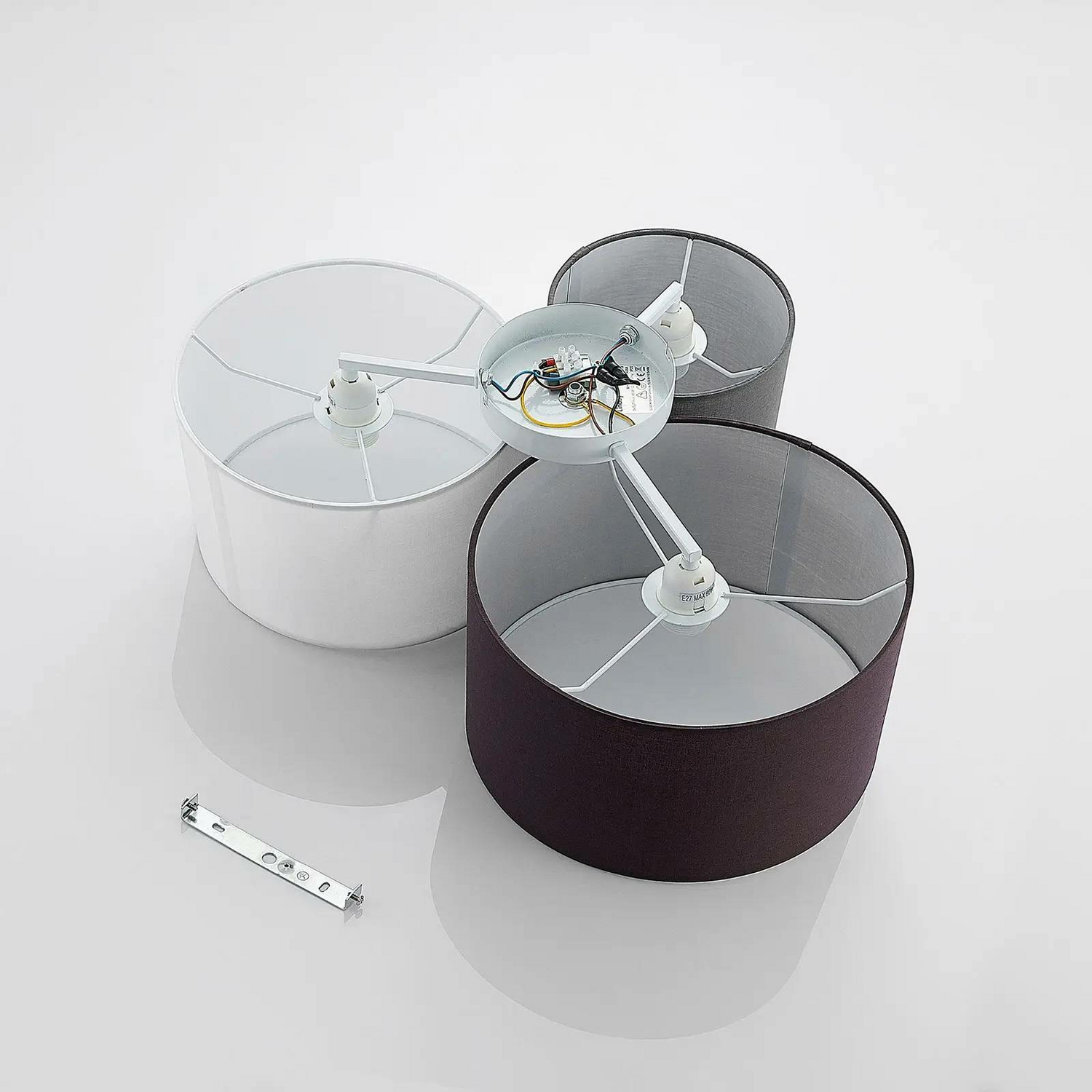 Die Deckenlampe Laurenz setzt sich aus verschiedenfarbigen und unterschiedlich großen Stoffschirmen in runder Form zusammen, was sehr stilvoll aussieht und vor allem ein gemütliches Licht bewirkt. Sehr gut geeignet für moderne Einrichtungsstile.