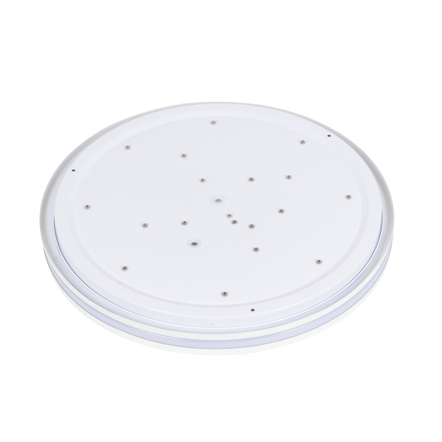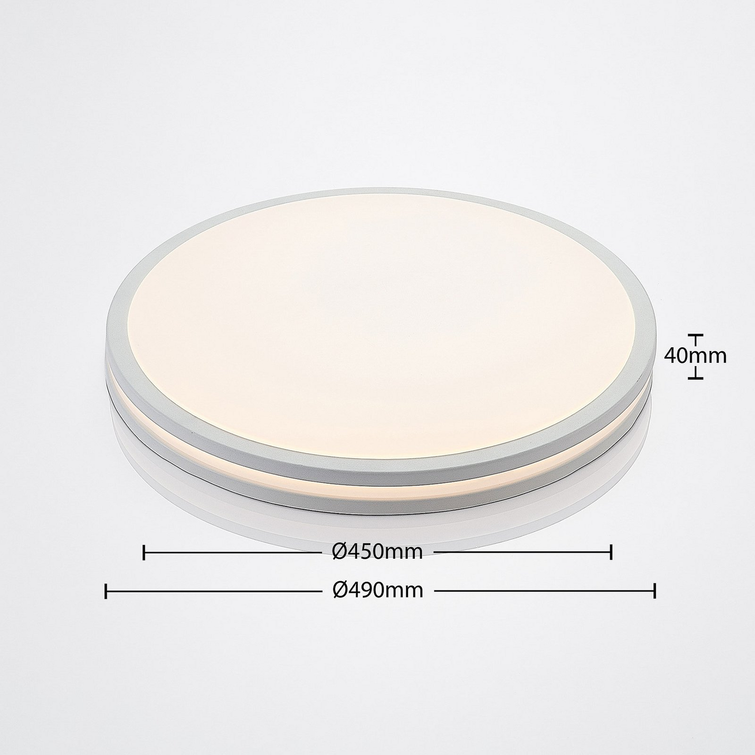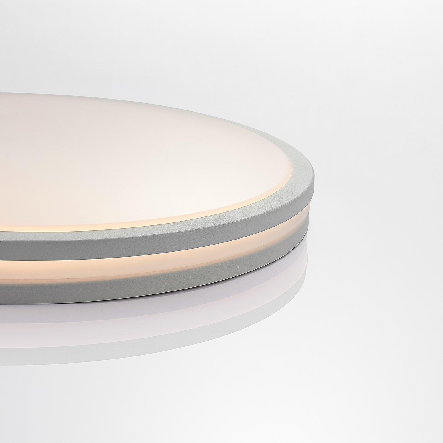 Die LED-Deckenleuchte Arnim ist mit der Schutzart IP44 für den Gebrauch in Badezimmern und anderen Feuchträumen gedacht. Mit ihrem Funktionsreichtum kann sie auch für gewerbliche Umgebungen genutzt werden. Die Anpassungsmöglichkeiten betreffen sowohl die Lichtfarbe als auch die Helligkeit. Zum Verändern dieser Funktionen liegt dem Lieferumfang eine Fernbedienung bei. Mit ihr kann man die Leuchtstärke in 22 Stufen oder stufenlos variieren und gleiches gilt für die Lichtfarbe, die sich in 20 Stufen oder kontinuierlich von warmweiß bis zur Lichtfarbe Tageslicht anpassen lässt.