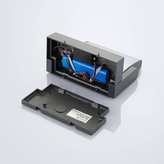 | Sonstige Maße | Wandhalterung - Breite 20,5 cm, Höhe 10,5 cm, Ausladung 3,5 cm; Leuchtkopf - Breite 17,5 cm, Tiefe 12,5 cm, Höhe 2,5 cm |
