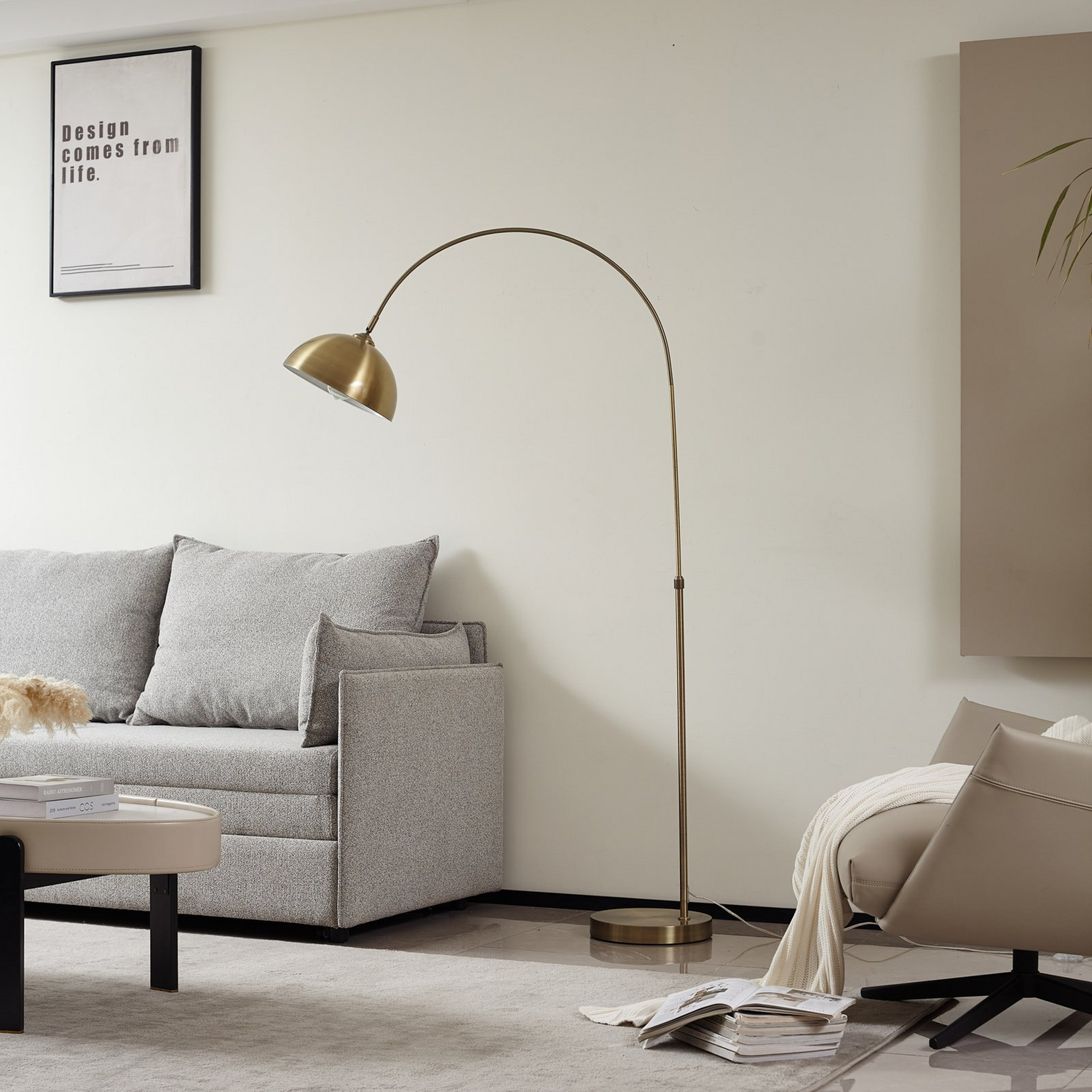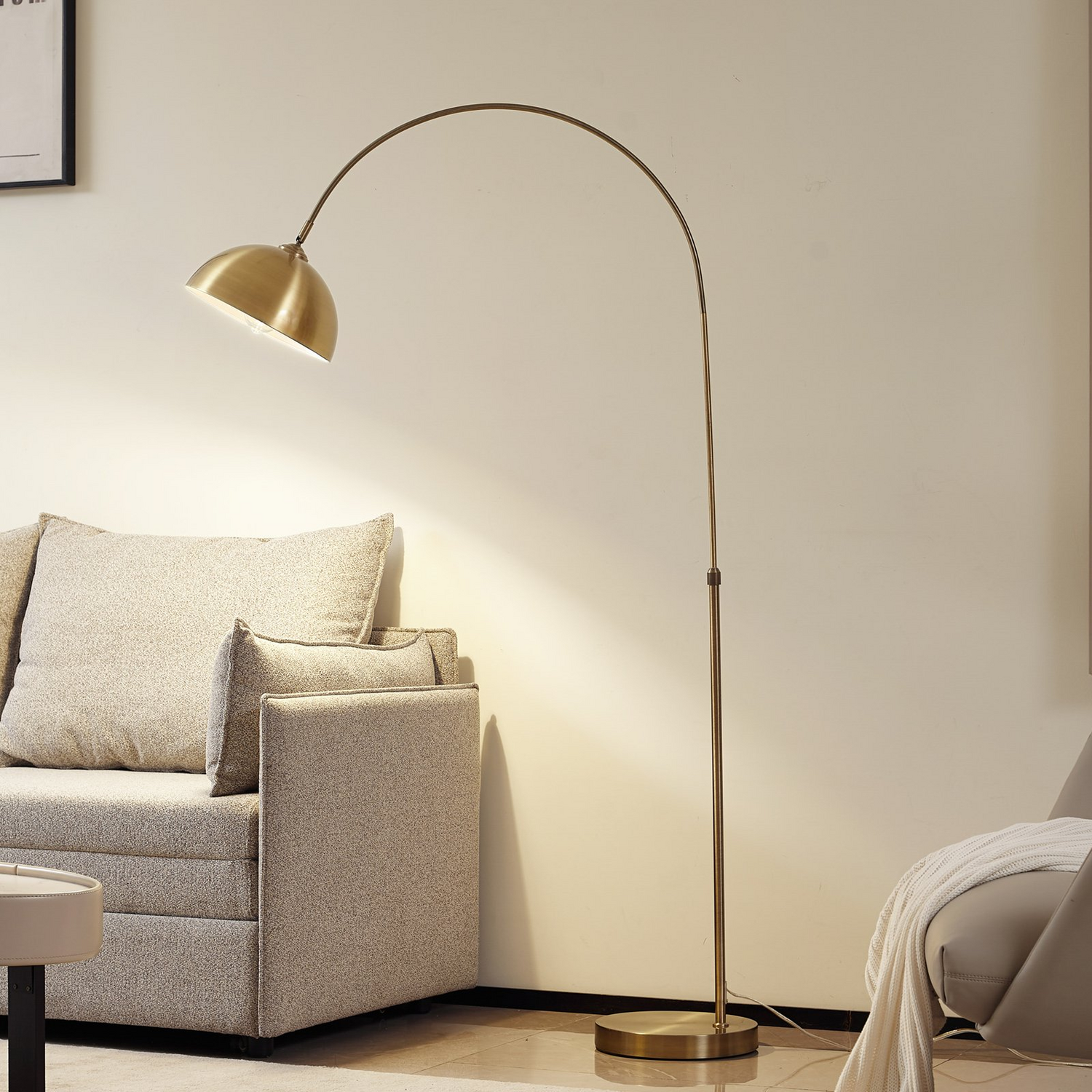 Die Bogenstehlampe verfügt über einen Kabelschalter, über den sie einfach ein- und ausgeschaltet werden kann, was ihr ein gewisses Maß an Flexibilität verleiht. Darüber hinaus ist ihr Bogen höhenverstellbar und ermöglicht eine Einstellung nach Bedarf (141-183 cm). Die Stehleuchte Lennart findet besonders in einem Wohnzimmer einen passenden Platz und ist eine perfekte Begleiterin, wenn es um das abendliche Bücherlesen auf dem Sofa geht.
