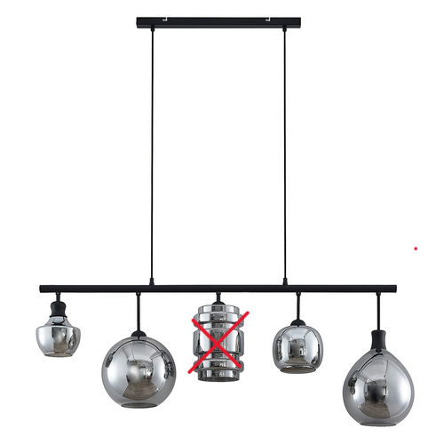 Glas-Pendelleuchte Mateno mit fünf unterschiedlich geformten Schirmen in Rauchgrau - ideal für die Tischbeleuchtung Mateno ist eine Balkenpendelleuchte mit einem schwarzen Metallbalken, an dem fünf Lampenschirme aus Glas befestigt sind, die alle eine rauchgraue Tönung besitzen, wobei aber jeder Schirm klar und durchsichtig ist. Mit der länglichen Form eignet sich die Hängeleuchte perfekt für die Beleuchtung eines Tisches im Esszimmer und das Design begeistert auch Nostalgiefans und vor allem Individualisten. So kann man die Esszimmer-Hängeleuchte zum einen mit Vintage-Interieur kombinieren und zum anderen in den angesagten Boho-Stil integrieren, bei dem viel Wert auf ausgesuchte Details mit einer gemütlichen Ausstrahlung gelegt wird, die gemeinsam mit ihrer Einzigartigkeit überzeugen. Jeder Schirm aus rauchgrauem Glas ist unterschiedlich geformt und das Licht besitzt eine behagliche Wirkung.