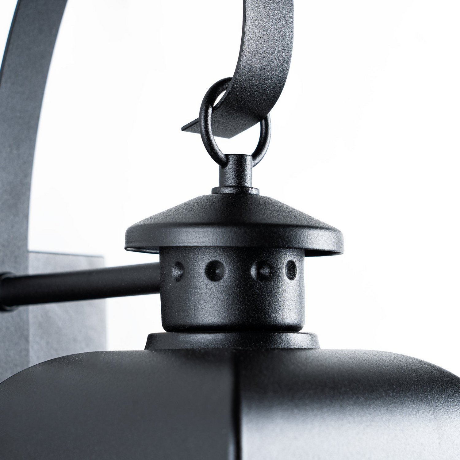 Die nostalgisch aussehende Außenwandleuchte Mertollio mit schwarzem Finish und Glaseinsatz passt gut zu antik wirkenden Häusern aus anderen Jahrhunderten. Sie verbreitet den Flair einer klassischen Laterne mit nostalgischer Note. Das Gestell der Außenwandleuchte ist verspielt geschwungen und käfigartige Einsätze halten das Klarglas, das die Leuchte vor Schmutz und Feuchtigkeit schützt. Eine schöne Lichtquelle für den gesamten Außenbereich!