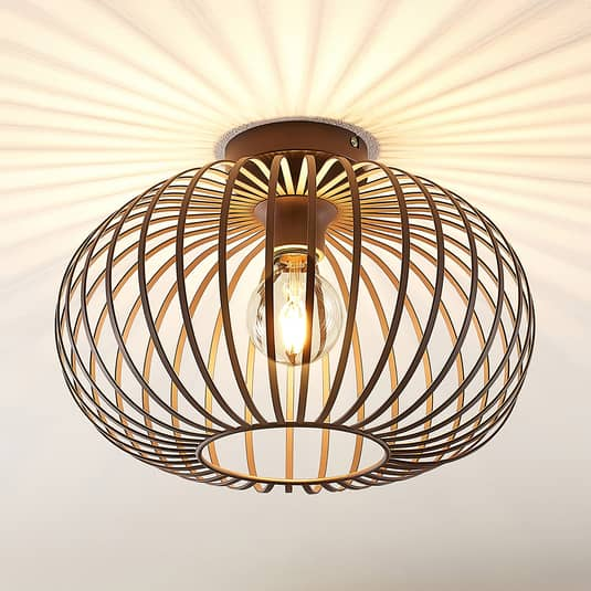 B-Ware Lindby Nahele Deckenlampe Hängelampe Lampe Leuchte E27 Käfigschirm Braun