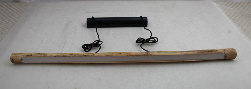 Besondere LED-Hängeleuchte Nekala mit einem Balken aus Eukalyptusholz